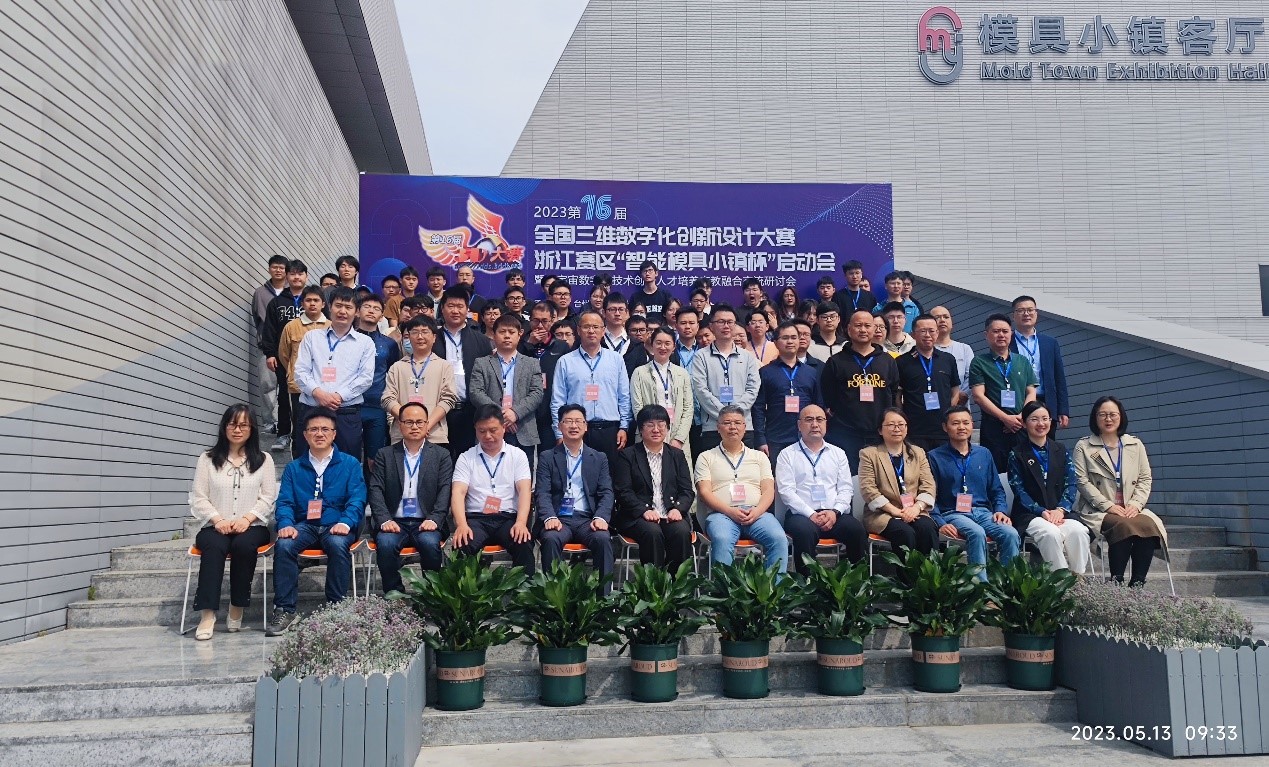 五月花香鸟语,13日,2023第16届全国三维数字化创新设计大赛浙江赛区启动会成功召开,授予公司浙江赛区承办权。全国3D大赛组委会副秘书长刘晓青、浙江赛区专家委员会主任胡明、黄岩智能模具小镇董事长陈文敏亲临现场指导,公司党委委员、副董事长赵小明应邀做主题报告,公司党委委员、副董事长李钧敏出席并致辞。活动由公司党总支书记吴建波主持。